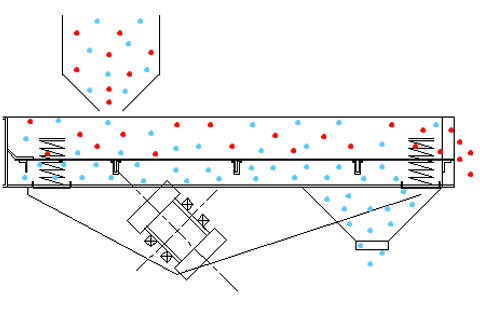 直線振動(dòng)篩采用雙振動(dòng)電機(jī)驅(qū)動(dòng),其兩電機(jī)軸相對(duì)篩面有一傾角,在激振力和物料自重力的合力作用下,物料在篩面上被拋起跳躍式向前作直線運(yùn)動(dòng),從而達(dá)到對(duì)物料進(jìn)行篩選和分級(jí)的目的。